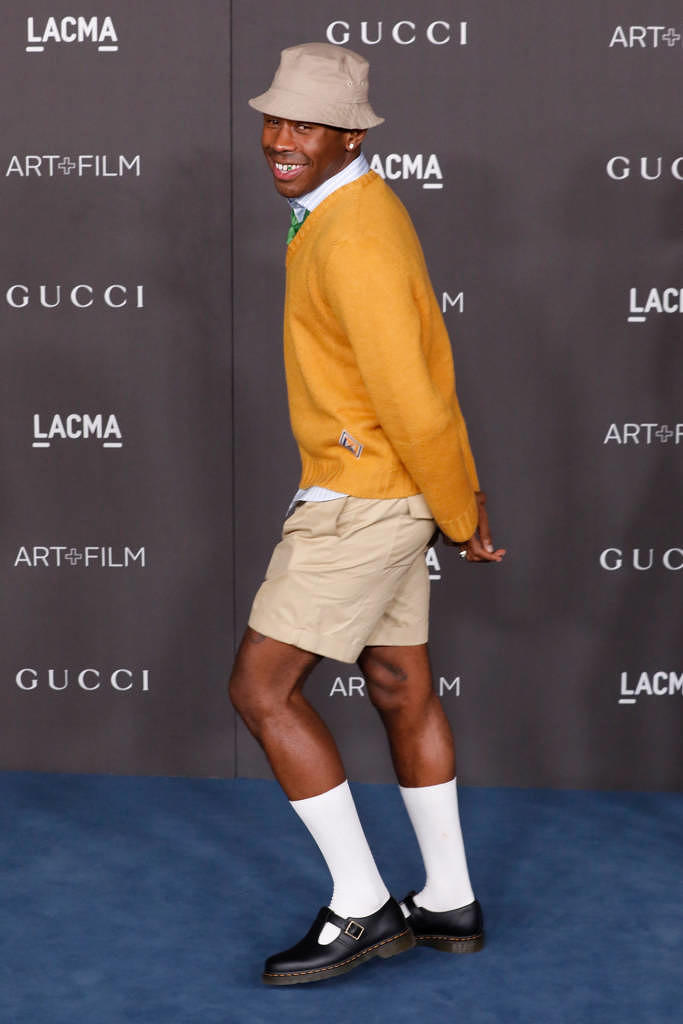 Rap-Musik und Dr. Martens passen eben auch längst zusammen. Tyler, the Creator trägt oft die 1461er-Halbschuhe, am liebsten als Loafer oder Sandale. Da erscheint es fast logisch, dass es von Dr Martens jetzt auch ein 1461er-Modell ohne Schnürsenkel gibt. Die drei Ösen bleiben leer, dafür gibt es innen, zwischen den Östenleisten, einen Gummizug. Woran erinnert das? Natürlich an Run DMC, die ihre Adidas-„Superstars“ in den Achtzigern immer ohne Schnürsenkel trugen. Der Look schlug während der ersten Rap-Welle so ein, dass Adidas dann ein Sondermodell herausbrachte, mit Gummizug innen. Das war zwar ein bisschen fake, aber dafür stolperte man beim Laufen nicht so.