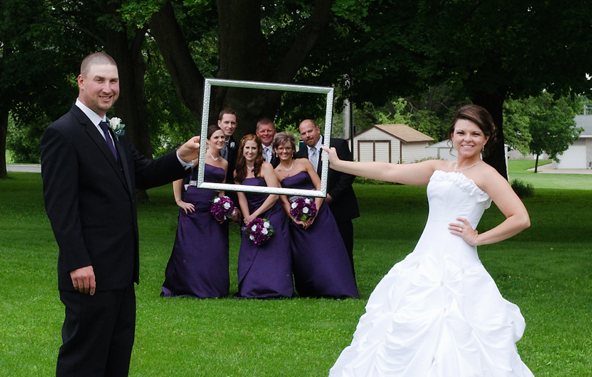 …vor allen Dingen, wenn sie auch noch ein ganz übermotiviertes Exemplar sind, das für sein gut ein Meter langes, super teures, weil super gutes Objektiv einen Waffenschein benötigt. Fotos können etwas Schönes sein, erinnern sie uns doch schließlich an schöne Momente – und Hochzeiten sind in den meisten Fällen schöne, erinnerungswürdige Momente. Aber sich einfach gesittet nacheinander mit dem Brautpaar auf eine Bank setzen und Fotos machen? Wie langweilig! Es ist doch ein kreativer Profifotograf mit Marktschreier-Qualitäten vor Ort. Wie wäre es mit, „10-Sekunden-Fotos“? Noch nie was von gehört? Voll die lustige Idee: Man hat zehn Sekunden Zeit, eine Gruppe zu bilden und ein Foto mit dem Brautpaar zu arrangieren. Löst diese „kreative“ Idee Stress bei allen Beteiligten aus? Führt sie zu Chaos und versehentlichen Griffen an private Körperteile von älteren Mitmenschen? Die Antwort lautet: Ja, und es ist nicht annähernd so lustig, wie es der Sadisten-Fotograf erscheinen lassen will.
