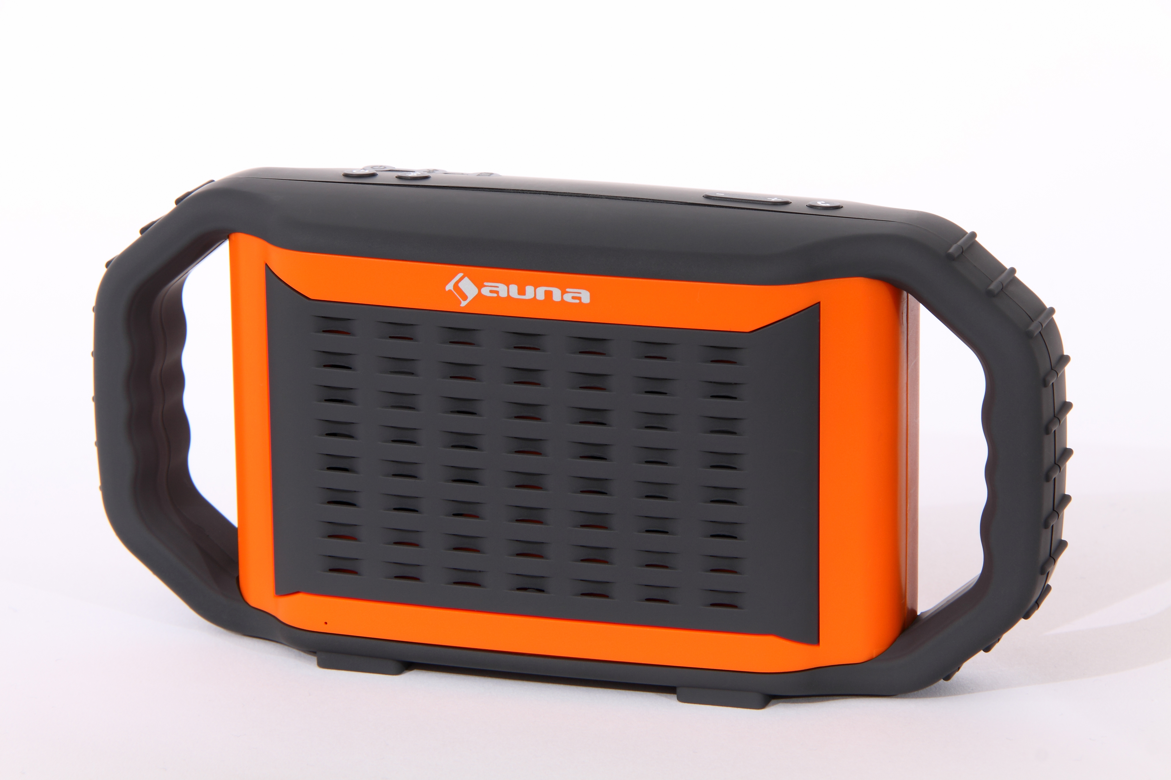Das spezielle Gehäuse des Poolboy soll dafür sorgen, dass selbst Wellengang der Musik nichts ausmacht. So besitzt das wasserdichte Kunststoffgehäuse nicht nur zwei handliche Griffe und eine umlaufende Gummischutzkante, das Gerät kann sogar „schwimmen“. Bedienung und Verbindung zum Handy regeln sich denkbar einfach. Geht es in die Vollen, übernehmen zwei Fullrange-Speaker die Performance mit richtigem Stereo-Sound. Der kommt sehr klar und direkt, im Bass präsent, jedoch nicht ultratief reichend. Auf der Luftmatratze oder im Pool spült der Auna in jedem Fall taktvoll den passenden Soundtrack ins Ohr.