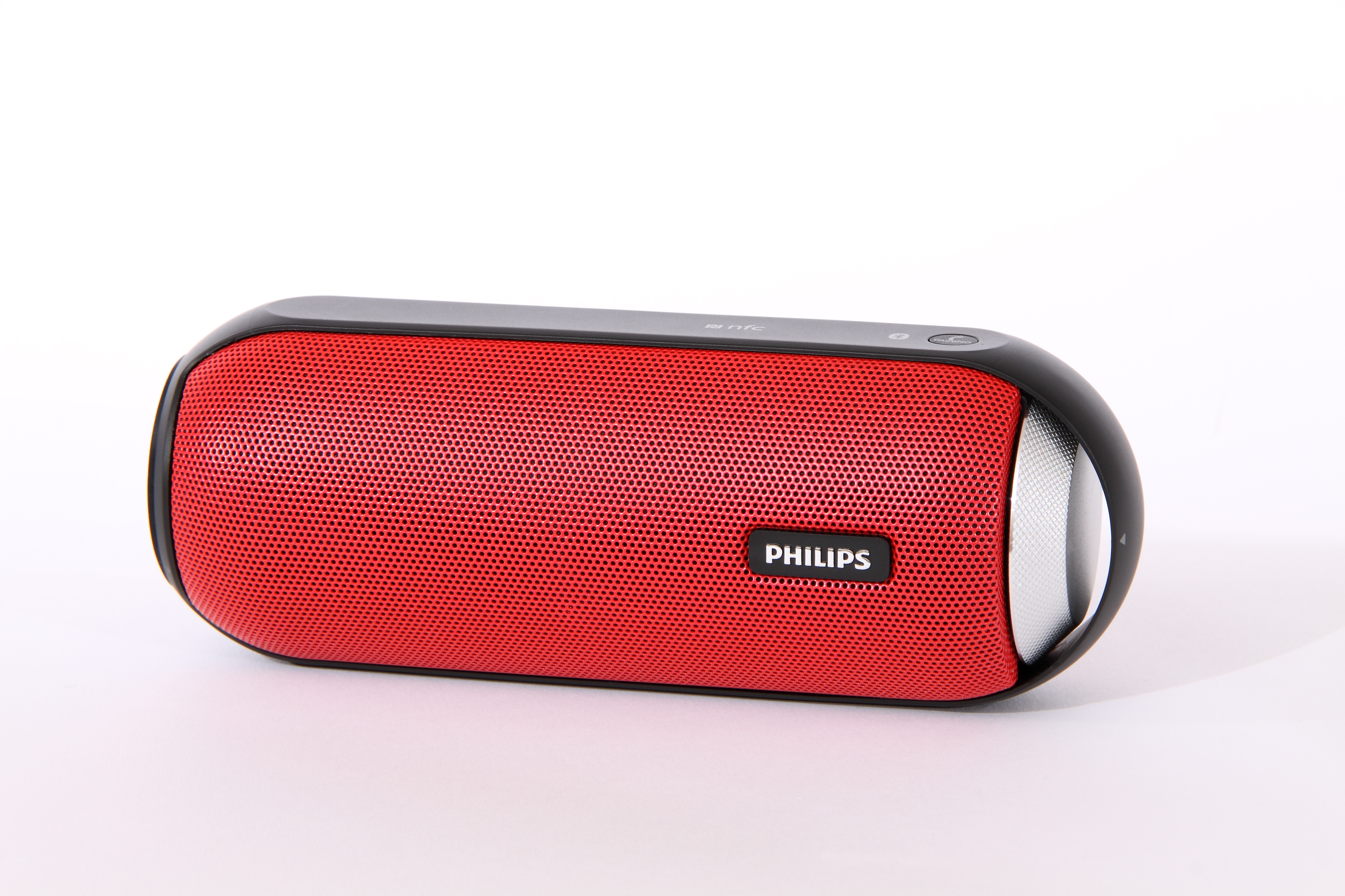 Ohne Ecken und Kanten zeigt sich die vor Spritzwasser geschützte Philips-Klangrolle. Sie nutzt ihre Bauform, um zwei Neodym- Treiber und zwei passive Bassstrahler gegenüberliegend arbeiten zu lassen. Sie erzeugen ein digital aufgepepptes 360-Grad-Musikerlebnis. Der Lautstärkeregler, der gleichsam Ein-/Ausschalter ist und ein Pairing-Button für den Bluetooth-Kontakt sind die einzigen Bedienelemente. Daneben wartet noch ein NFC-Connector auf andockwillige Zuspieler. Mit dem beiliegenden Netzteil geladen, ist der BT-6000 für etwa acht Stunden einsetzbar und obendrein für Telefonkonferenzen geeignet. Tontechnisch bringt sich der Philips mit einer sehr natürlichen Hochtonwiedergabe und druckvollem Bassfundament sauber in Position.
