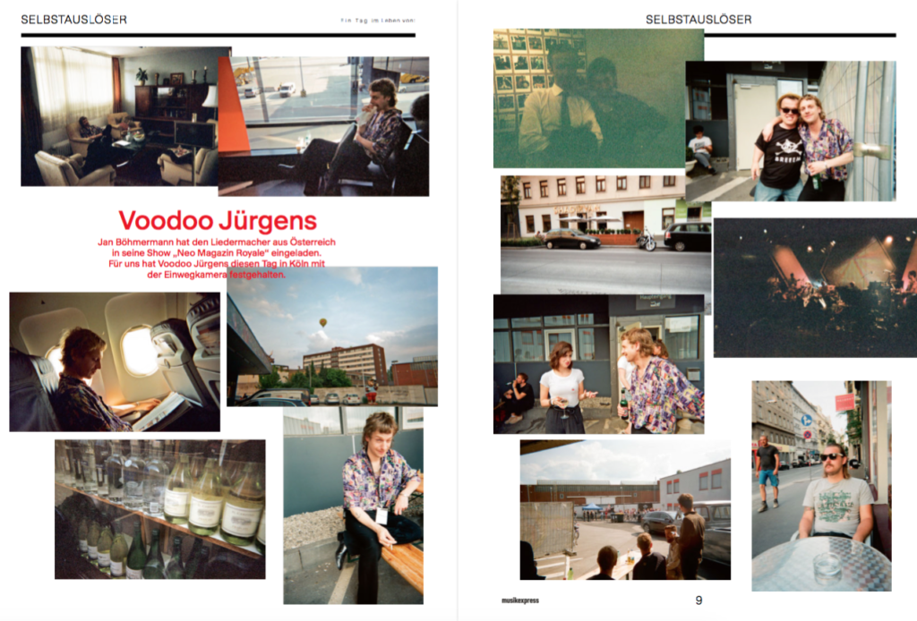 Jan Böhmermann hat den Liedermacher aus Österreich in seine Show „Neo Magazin Royale“ eingeladen. Für uns hat Voodoo Jürgens diesen Tag in Köln mit der Einwegkamera festgehalten.