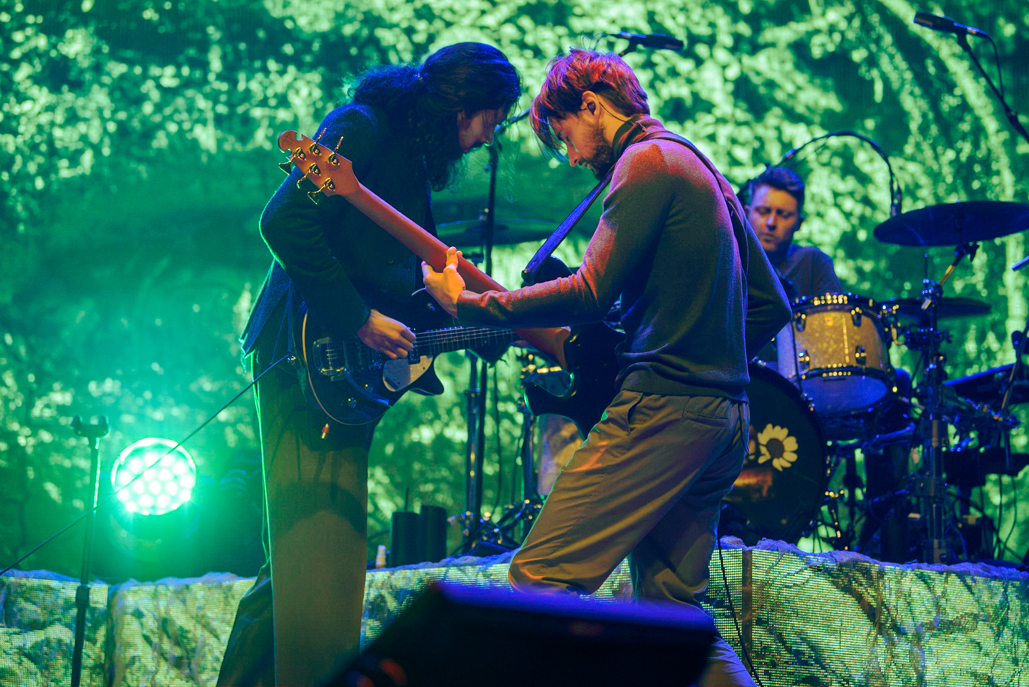 Das nehmen einige Zuschauerinnen im Saal allzu wörtlich, denn das Konzert muss an diesem Abend gleich viermal wegen mutmaßlicher Synkopen von Fans unterbrochen werden. Am Pogo liegt es natürlich nicht, denn es gibt keinen, eher an Dehydration und den wirklich gesalzenen Preisen für Getränke in der Venue. Großes Tennis, dass der Künstler trotz seiner Versunkenheit in die Musik immer ein wachsames Auge auf seine Fans hat und so jedes Mal blitzschnell reagieren kann. Brav bedankt er sich auch für die Umsichtigkeit der Zuschauer:innen miteinander und für die Geduld beim Rest des Publikums.
