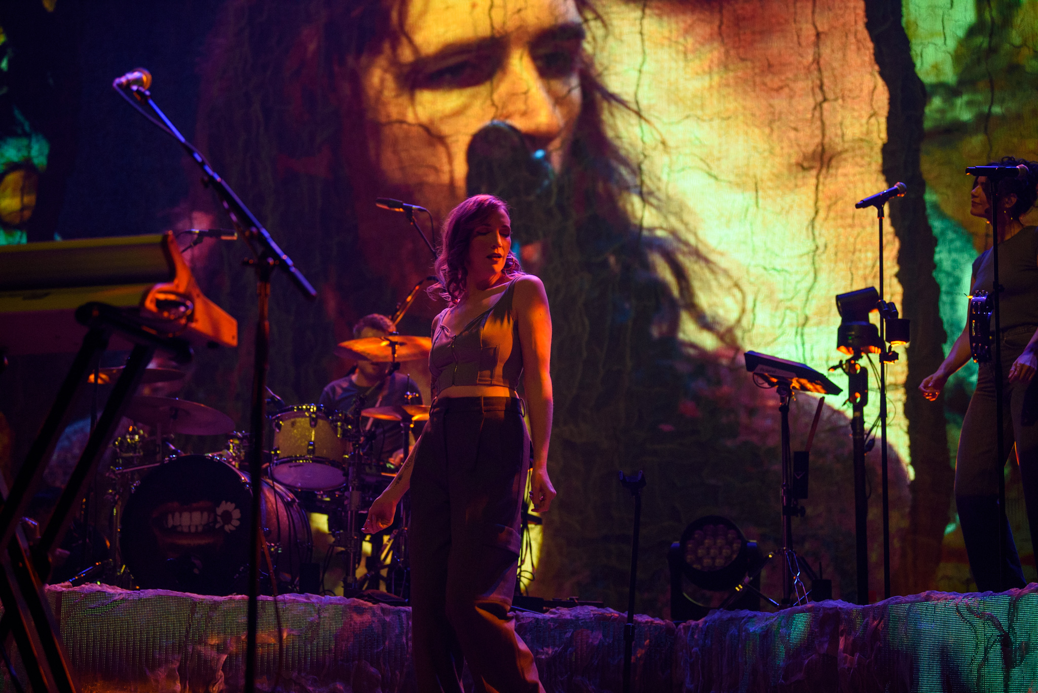 Das allein reicht aber noch lange nicht, um ein wirklich gutes Konzert zu spielen. Dafür sorgen auch die bereits erwähnten Mitmusiker:innen, zu gleichen Teilen bestehend aus Männern und Frauen, allesamt Multiinstrumentalist:innen und international aufgestellt. Ausnehmend harmonisch im doppelten Sinne präsentiert sich diese Band um das Mastermind Hozier, baut Klangteppiche auf, um sie bombastisch zu entladen und durch den neunstimmigen Gesang schon fast orchestral zu