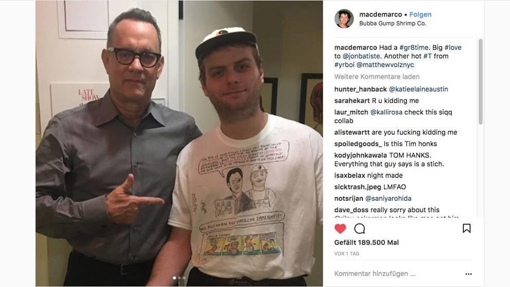 Mac DeMarco trifft Tom Hanks – und trägt dabei ein T-Shirt mit ihren Gesichtern
