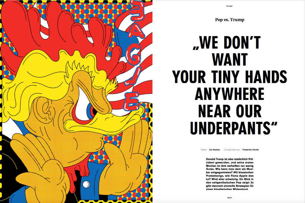 Donald Trump ist also tatsächlich Präsident geworden, und seine ersten Wochen im Amt verheißen nur wenig Gutes. Wie kann man dem als Musiker entgegentreten? Mit klassischen Protestsongs, wie Fiona Apple das tut? Wird eher schwierig. Ein Blick in den zeitgenössischen Pop zeigt: Es gibt dennoch sinnvolle Strategien für einen künstlerischen Widerstand.