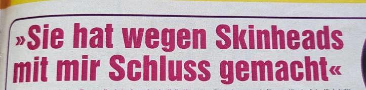 Der Doktor, er ist doch immer wieder Garant für stabile Überschriften, die man sich streng genommen noch heute als Wandtattoo machen sollte: „Sie hat wegen Skinheads mit mir Schluss gemacht“. Tja, das würde mich echt auch runterziehen. Feel you, Bro!