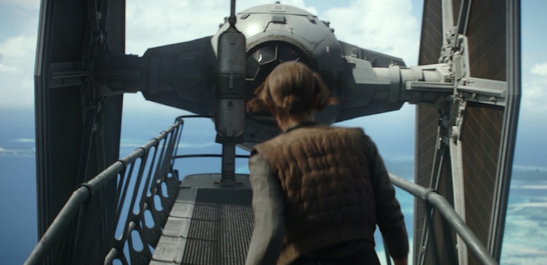 Auffälliger noch werden die Reshoots bei einer weiteren Szene, die in den Trailern zu „Rogue One“ prominent hervorgehoben wurden. Im Finale des Films muss Felicity Jones die Spitze einer Imperiums-Basis erreichen. Während im fertigen Film Ben Mendelsohn versucht, sie aufzuhalten, trifft sie im Trailer noch auf einen Tie-Fighter, in dem Fans vor dem Kinostart Darth Vader vermuteten.