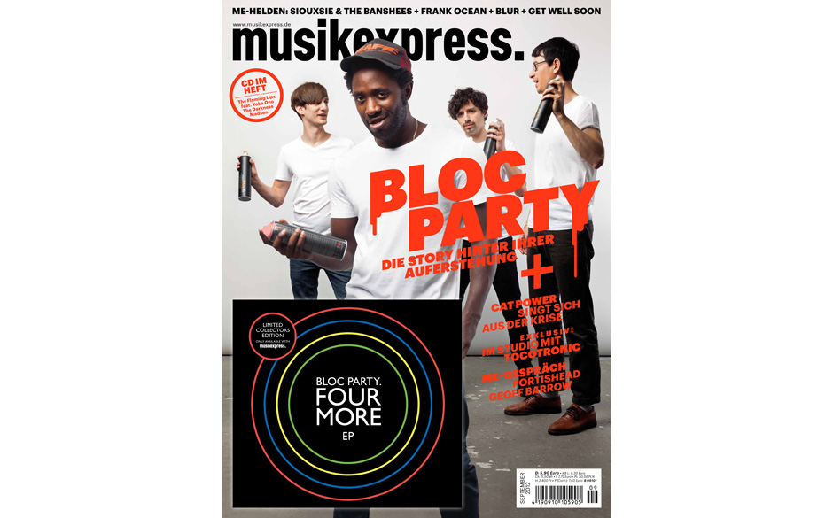 Plus: Die Four-More-EP von Bloc Party – exklusiv für Musikexpress. Die EP (inkl. der Single „Octopus“ + drei unveröffentlichten Non-Album Tracks) ist ausschließlich mit der Musikexpress-Ausgabe 9/2012 und nicht im Handel erhältlich.