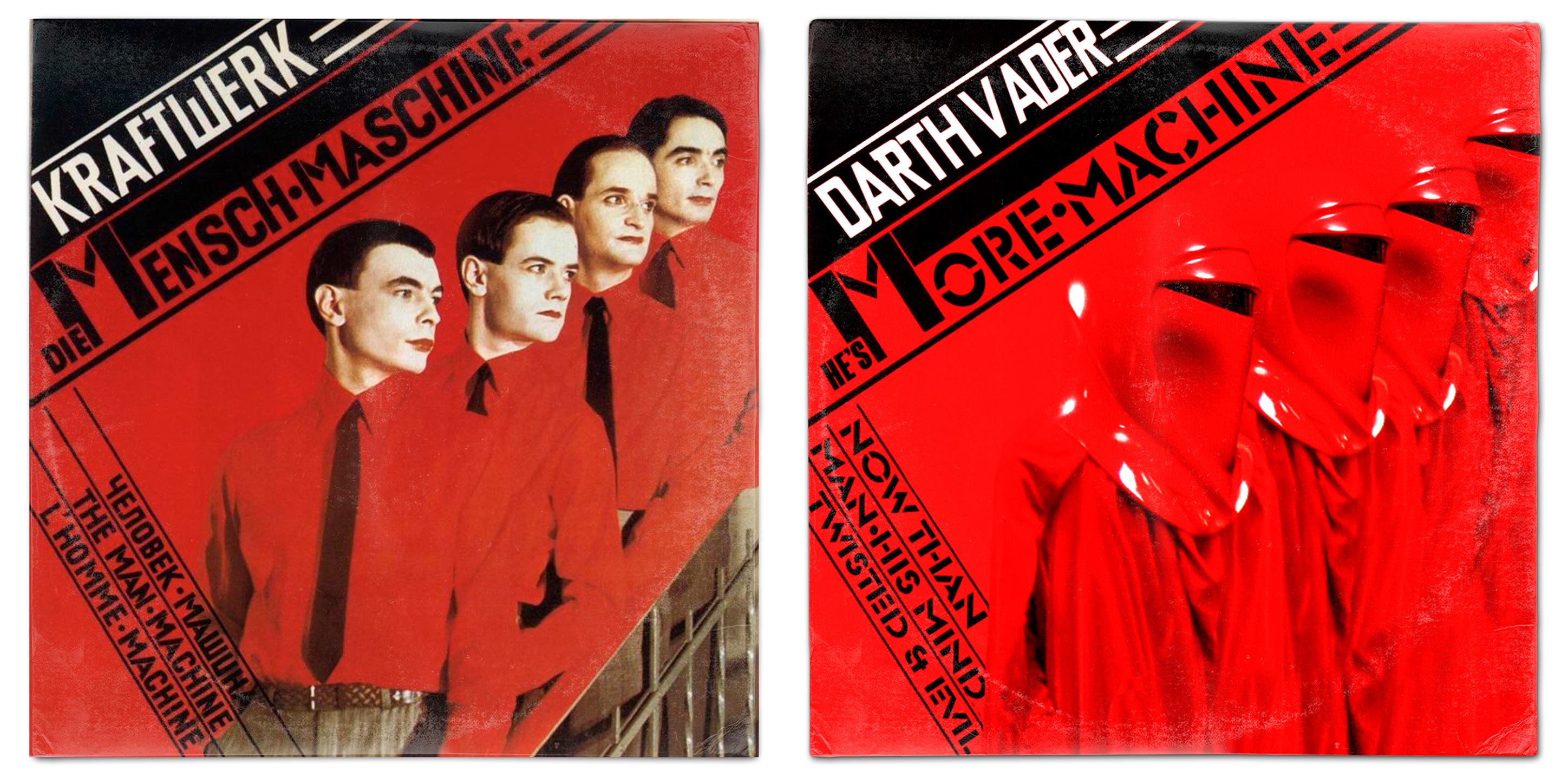 Lear vermischt nämlich bekannte Albumcover der Musikgeschichte mit den Hauptcharakteren einiger der wichtisten TV- und Filmproduktionen der letzten Jahrzehnte. Ganz besonders hat es ihm die Star-Wars-Saga angetan. Aber auch abseits des Jedi-Universums treibt er seinen Schabernack. So wird beispielsweise aus Michael Jacksons BAD, MAD – mit „Mad“ Max Rockatansky auf dem Artwork.