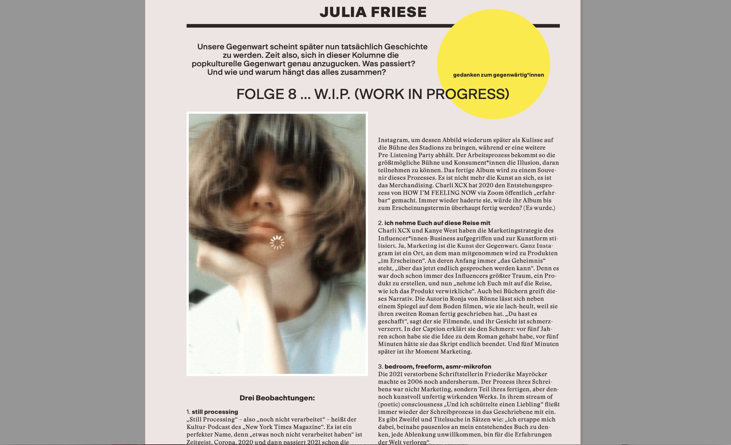 „Wenn eine Autorin es schafft, Leser*innen mit einem Porträt über eine Künstlerin zu begeistern, obwohl sie zuvor nie Fan ihrer Musik waren, wenn sie neugierig macht und durch ihren Artikel zu einem erneuten Hereinhören in die Songs verführt, dann hat sie ihr Ziel erreicht. Annett Scheffel ist das mit ihrem Stück über die neuseeländische Musikerin Lorde gelungen.“