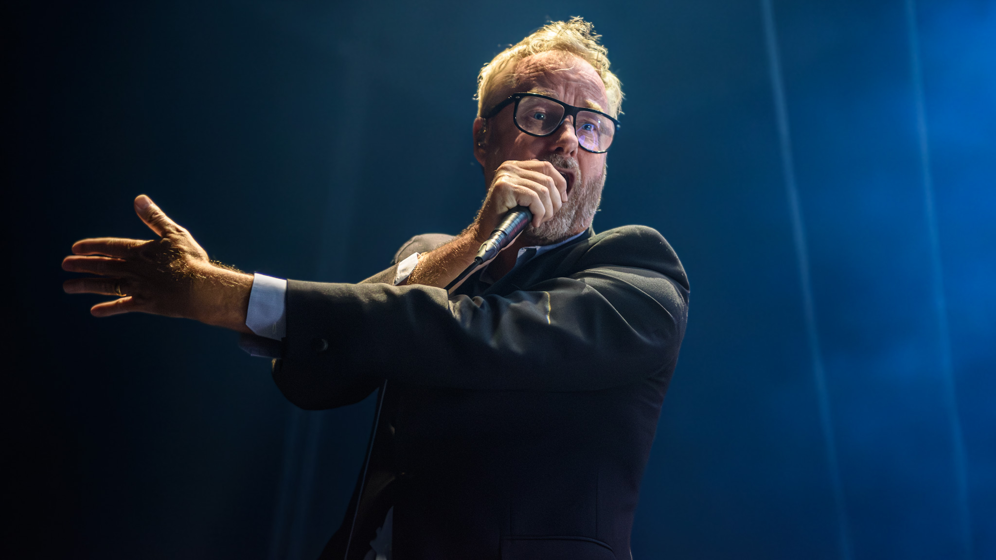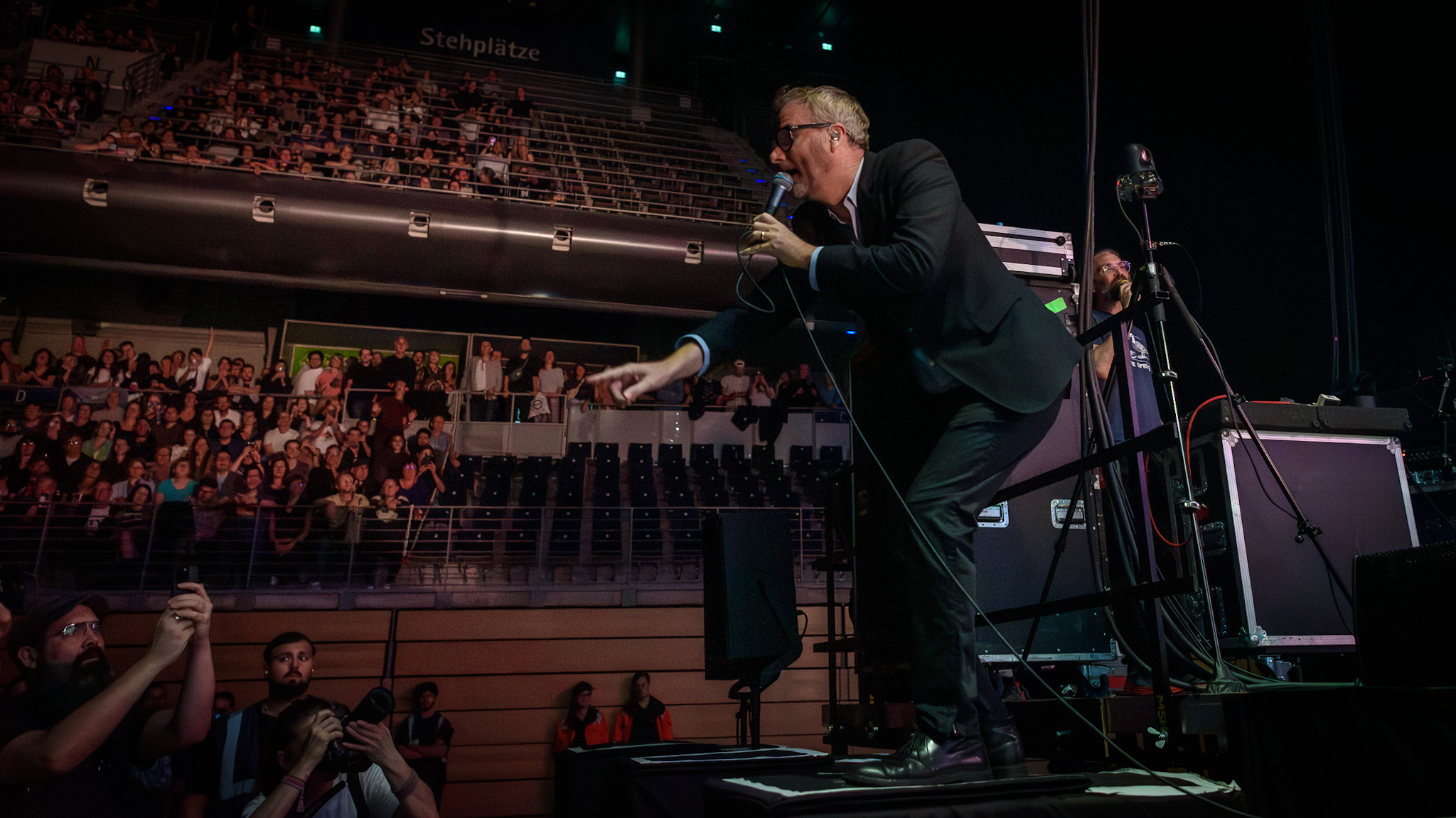 Der Zugabenblock umfasst nochmals drei Titel, am Ende werden The National 28 Stücke präsentieren. Beim letzten Stück, „Vanderlyle Crybaby Geeks“ gibt es nur noch die Akustikgitarre und das Publikum, das textsicher und auch melodisch den Gesang übernimmt, angeleitet von Matt Berninger als expressionistischen Dirigent. Fesselnd, so wie der ganze Abend.