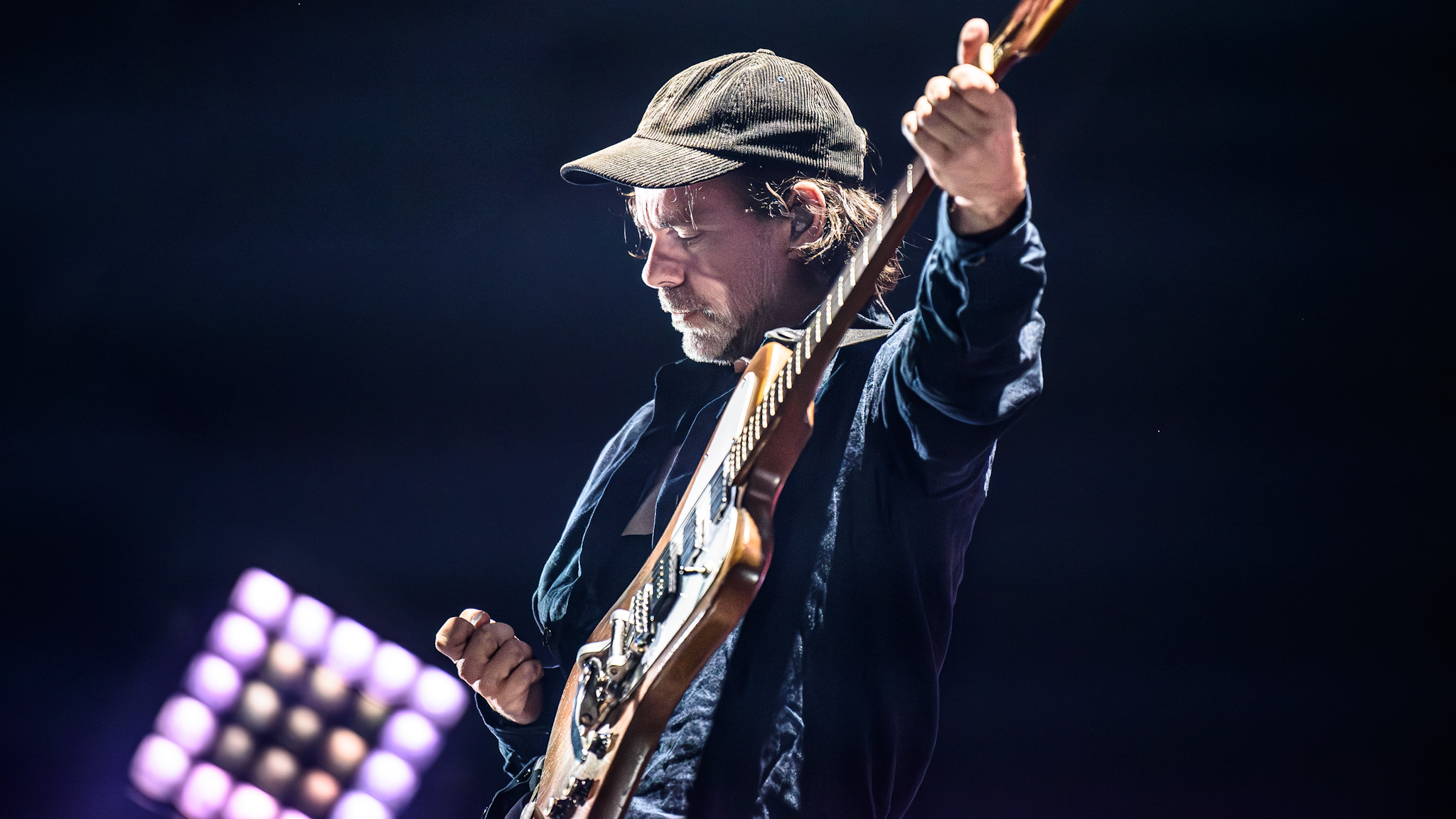 Als er zwei Vinyls von Fans zur Signatur überreicht bekommt, legt er diese wiederum auf den sich bewegenden Scheinwerfer und prompt fallen beide Platten von der Bühne. An dieser Stelle geht ein Raunen durch die Reihen der Beobachter:innen. Auch eine von Berninger zerstörte Platte hat nur noch ideellen Wert. Es sind aber genau diese kleinen Ausbrüche aus der Schwermütigkeit, die den Abend so interessant machen. Ein bisschen Frohmut obschon der ganzen Melancholie. Davon gibt es noch immer jede Menge, gerade bei den bekanntesten Stücken wie „Bloodbuzz Ohio“ früh im Set, „Fake Empire“, einer bewegenden Version von „England“ und natürlich der anrührenden Liebeserklärung „I need my girl“.