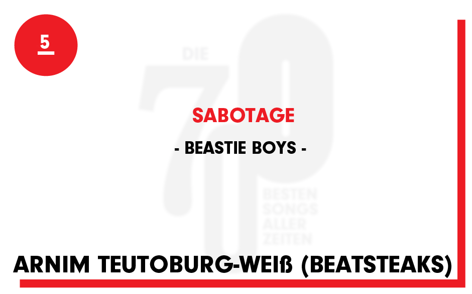 Hier die Liste von Beatsteaks-Frontmann Arnim Teutoburg-Weiß. Oben in der Galerie seht Ihr seine zehn Lieblingssongs aller Zeiten – unter anderem mit Inner City, Blur und Queen.