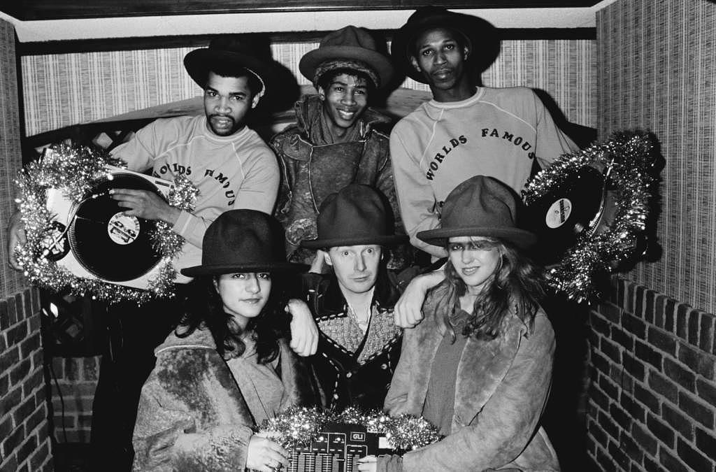 Das Hutdesign des „Buffalo Hat“ kreierte die Modeschöpferin bereits im Jahr 1983. Auf dem Foto tragen die Rapper The World’s Famous Supreme Team ebenfalls das Modell. Hier zusehen sind die Rapper, Malcolm McLaren (vorn, mittig) und mehrere Models – alle tragen Outfits aus der Vivienne-Westwood-Kollektion „Buffalo“.