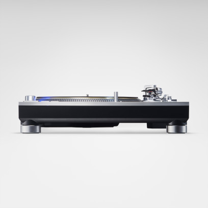 Aus gleich drei Schichten besteht der Plattenteller des neuen SL-1200G. Während die Rückseite komplett mit vibrationsabsorbierendem Gummi bezogen ist, verbindet die Oberfläche eine massive Messingdruckgussplatte mit einer leichteren Aluminiumdruckgussplatte. Dies führt dazu, dass Resonanzen vermieden werden können und die Rotationsstabilität gesichert wird.